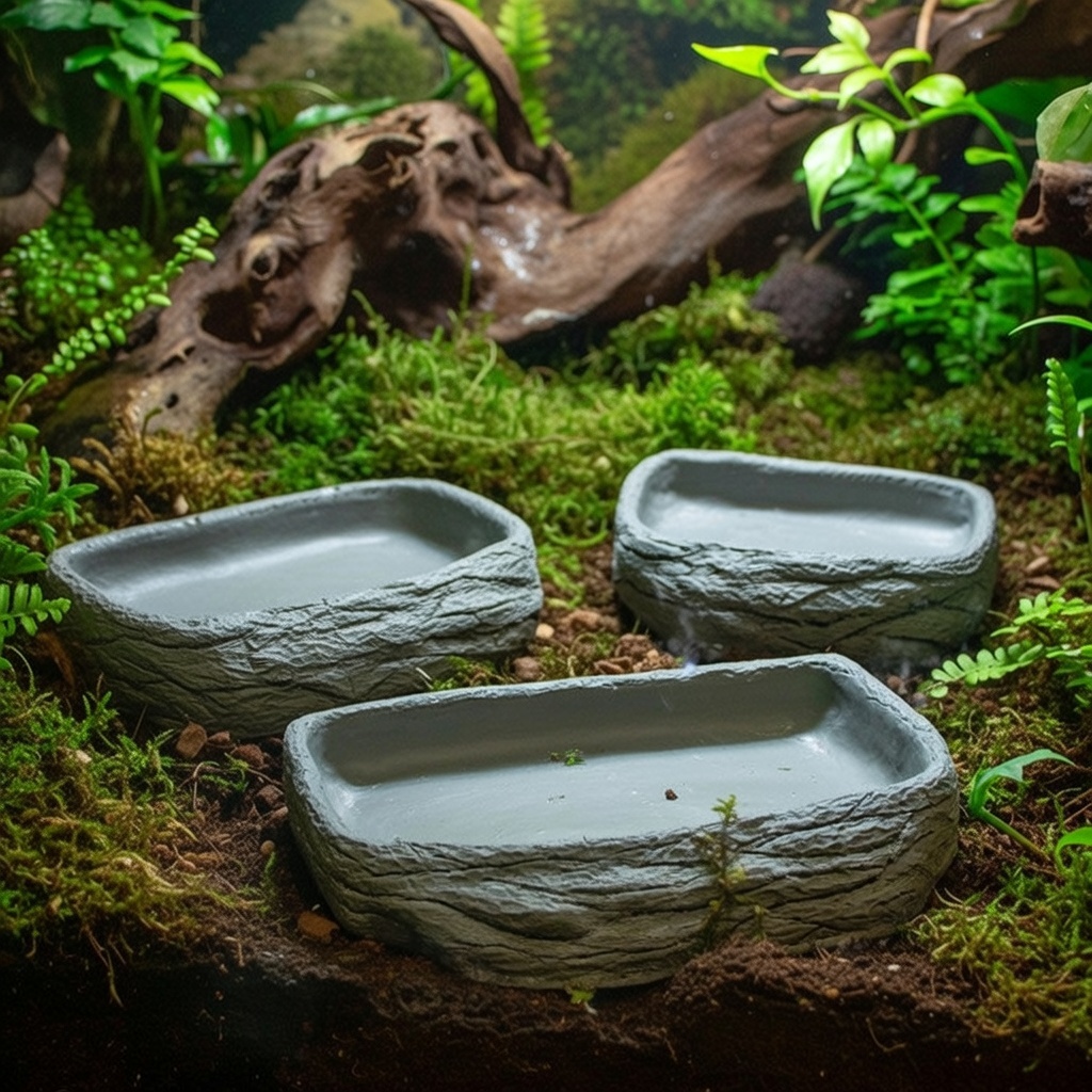 A water bowl specifically designed with tortoises in mind with a ramp on one side, this makes it safe and easy for tortoises to climb in and out.