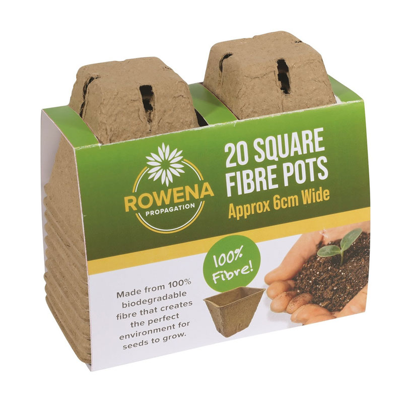 Square Fibre Pots 6cm (Pack of 20) for Garden Plants Seeds Sowing Strong Pot Greenhouse Allotment Gardening